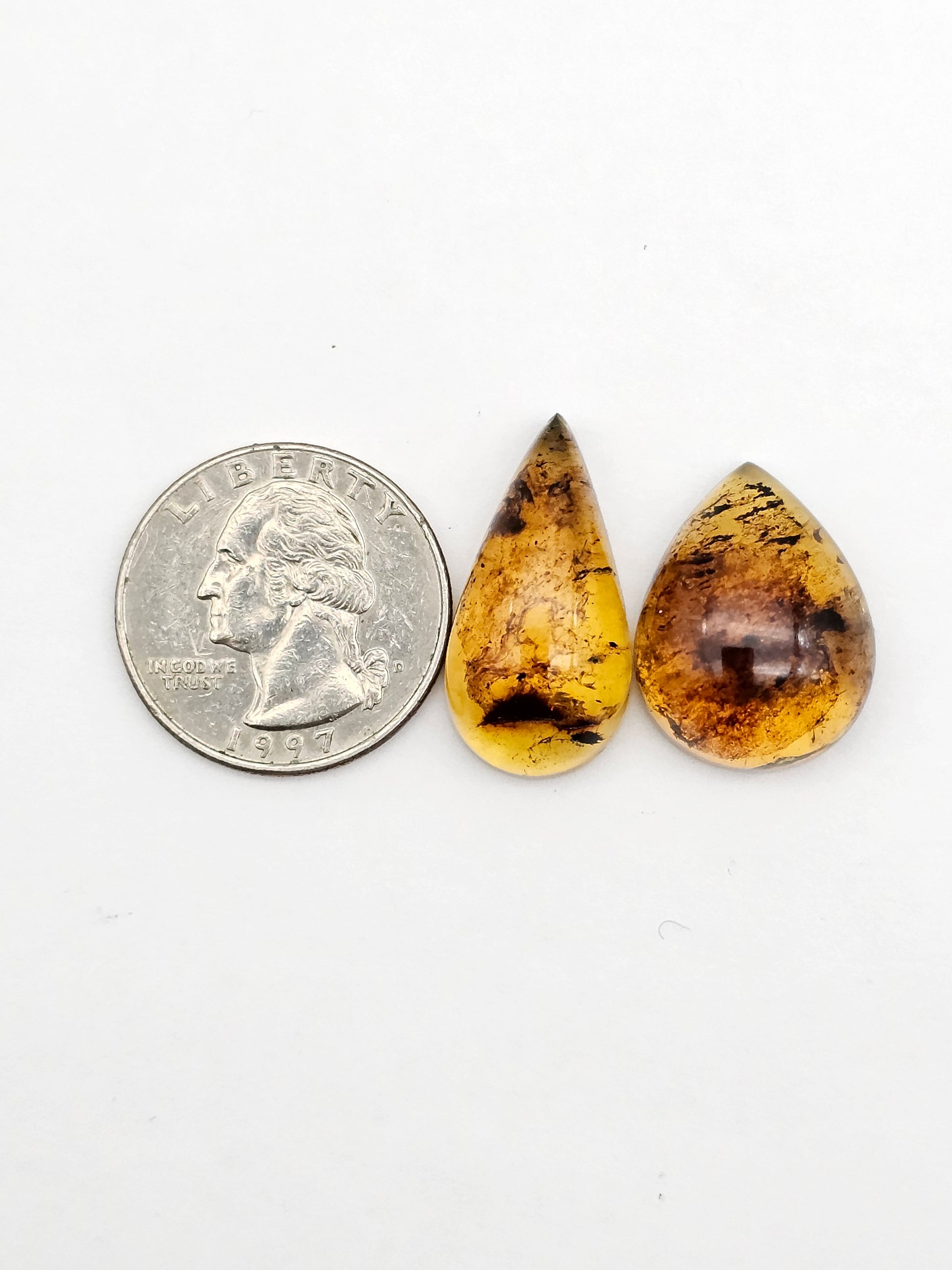 Authentic Mexican amber cabochon sourced from southern Mexico and dating back about 20 million years. Formed from fossilized tree resin, it may contain natural inclusions like plant debris or silt. Hand cut by Pablo and his family, each piece showcases amber’s warm glow. Fair trade and ethically sourced, ideal for meaningful, one-of-a-kind jewelry designs.American quarter photographed is 24.26mm round for size reference.