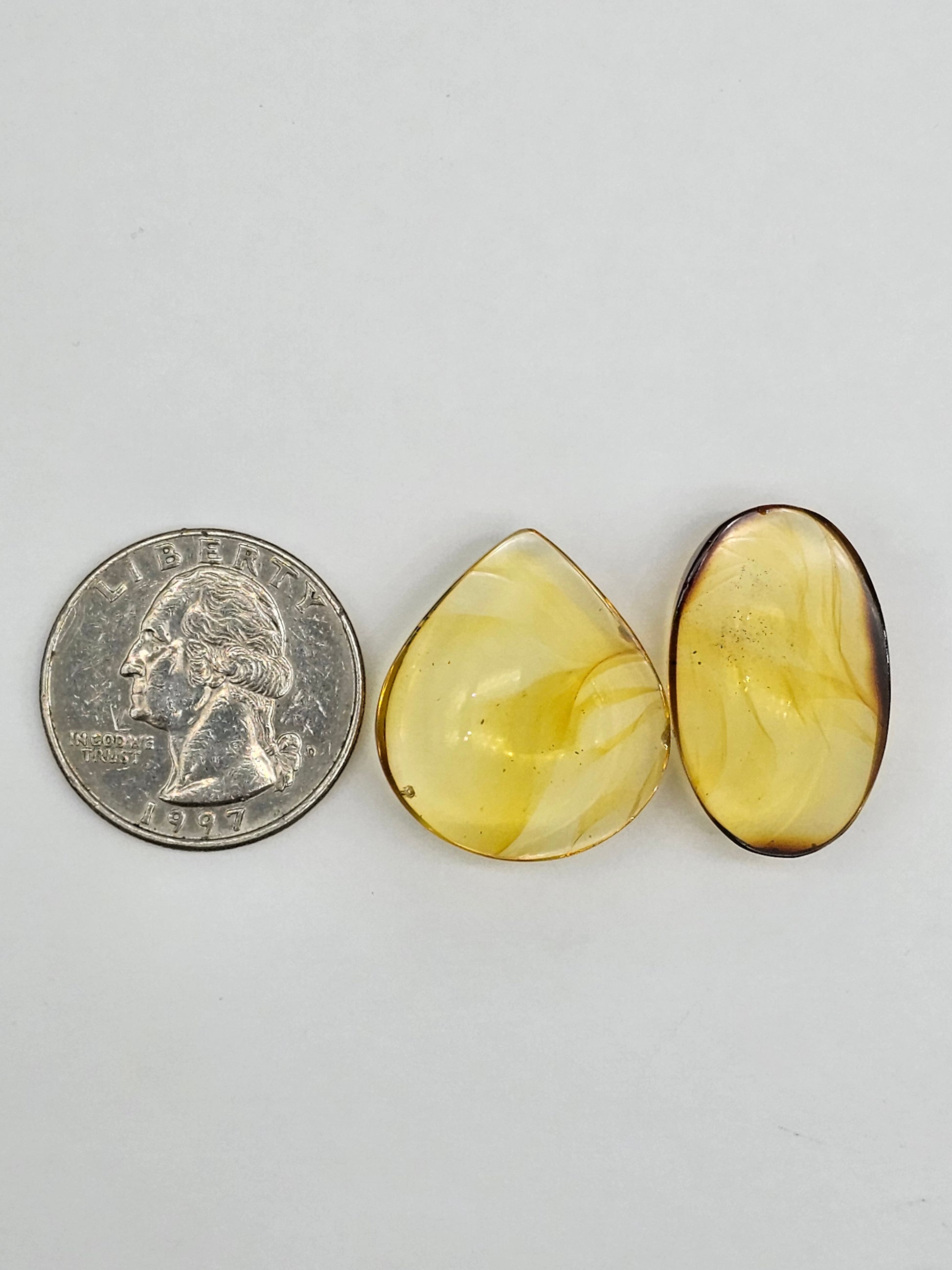Authentic Mexican amber cabochon sourced from southern Mexico and dating back about 20 million years. Formed from fossilized tree resin, it may contain natural inclusions like plant debris or silt. Hand cut by Pablo and his family, each piece showcases amber’s warm glow. Fair trade and ethically sourced, ideal for meaningful, one-of-a-kind jewelry designs.American quarter photographed is 24.26mm round for size reference.